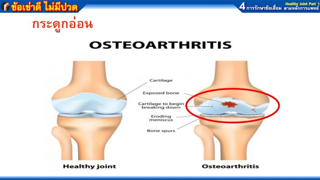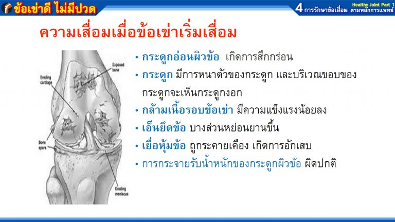 - กระดูกอ่อนผิวข้อ เกิดการสึกกร่อน