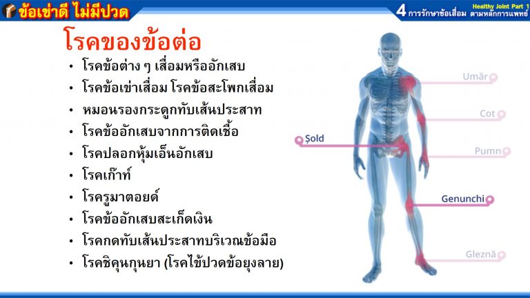 - โรคข้อเข่าเสื่อม โรคข้อสะโพกเสื่อม